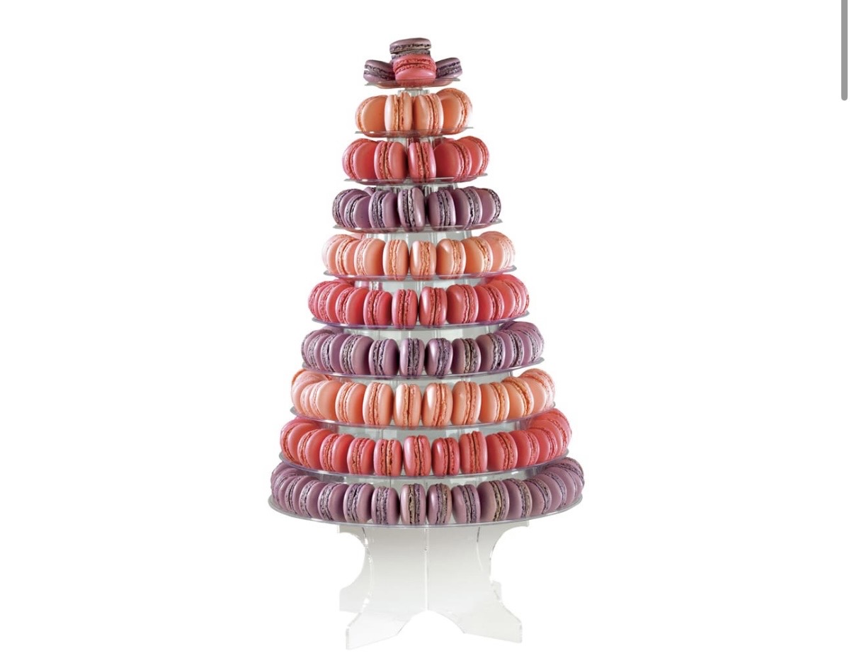 Praktická a elegantní pyramida na makronky umožňuje profesionální prezentaci bez propichování a lepení makronek. Obsahuje 10 odnímatelných pater (nožka není součástí - dá se přiobjednat). Vyrobena z transparentního PVC, určeného pro styk s potravinami. Je opakovatelně použitelná a vhodná pro ruční mytí.